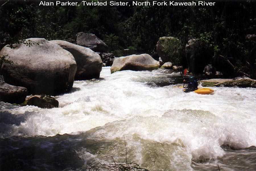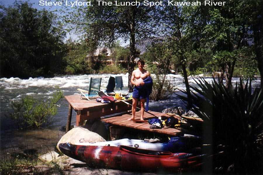 I was boating on the Kaweah and it's tributaries for a total of three weeks this season. The second two week trip with Steve Lyford saw 9 consecutive days on the North Fork between 1.9 ft.and 1.45 ft. We did an exploratory run from 4 miles up the South Fork and numerous runs above and below Dinely Bridge on the main Kaweah. We also got down on the Tule for 2 runs. It was a big water year and the North Fork was running through July 12th. --Your Kaweah Webmeister, Bill Pooley--